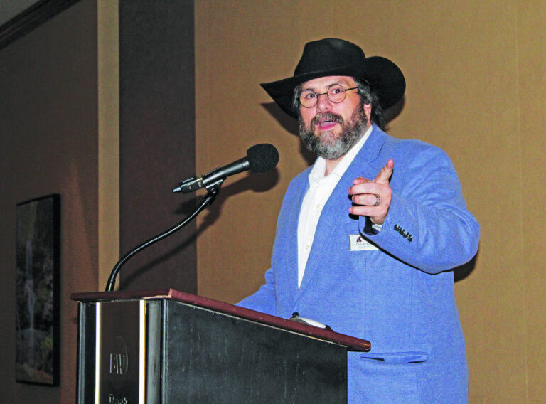 Good Shepherd Humane Society executive director Cole Wakefield thanks those in attendance at the annual Santa Paws fundraiser on Saturday, Nov. 22, at Best Western Inn of the Ozarks Convention Center.